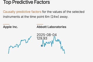 Apple AAPL and Abbott Laboratories ABT are computed as the top two causally predictive factors of the prices of the three US stock index ETFs.