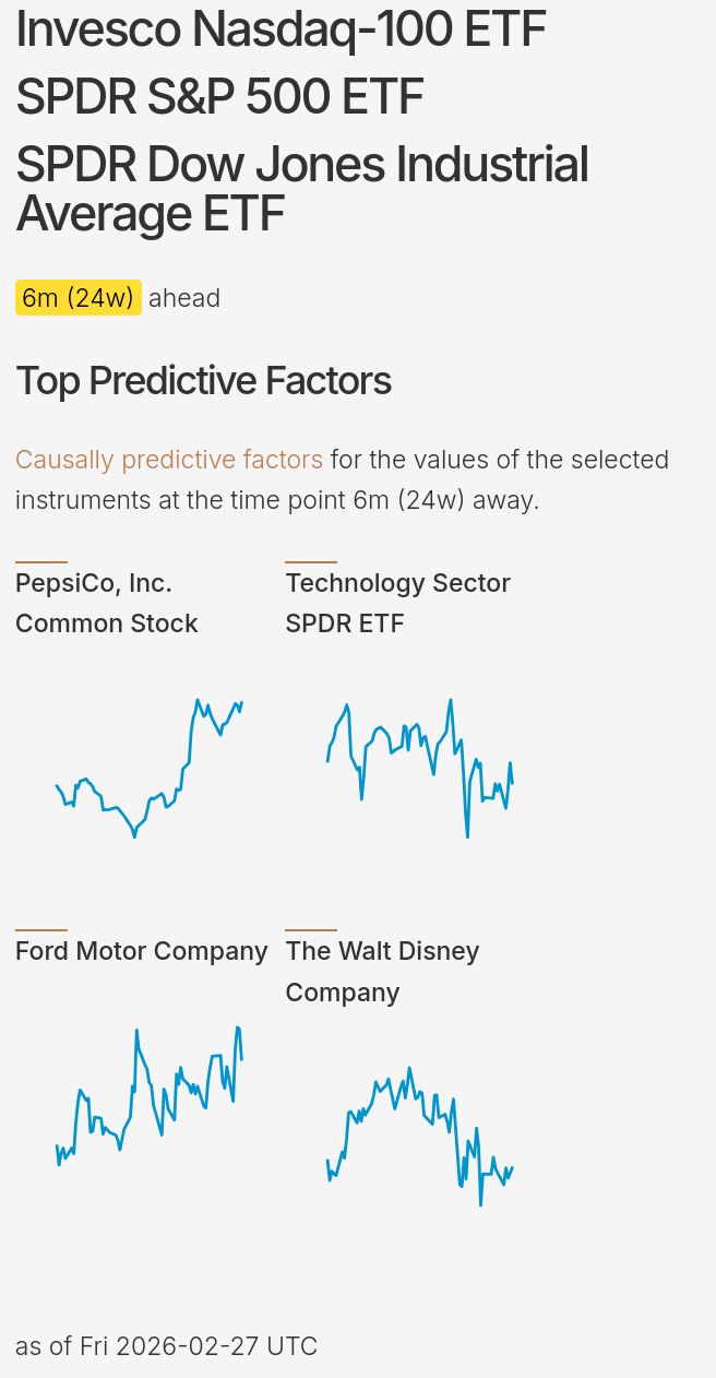 Pepsi PEP and the Technology Sector ETF XLK are computed as driving the US three stock indices: Nasdaq 100, S&P 500, Dow Jones Industrial Average index.